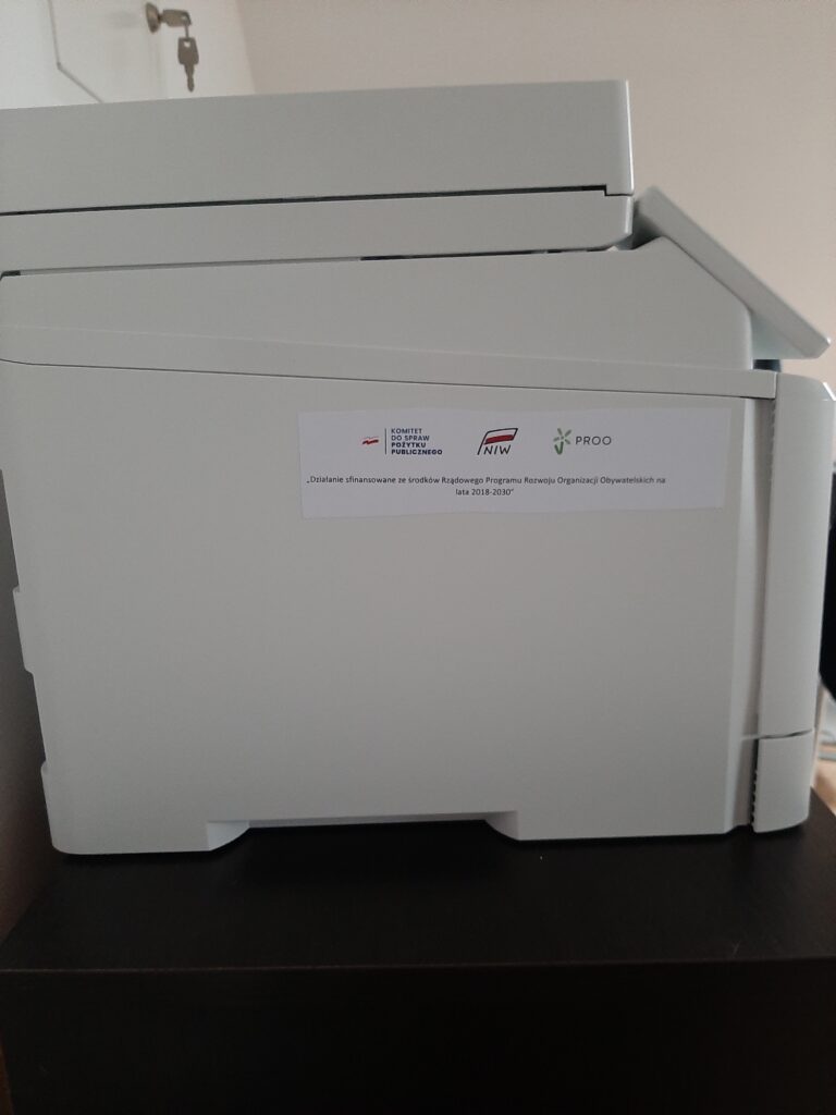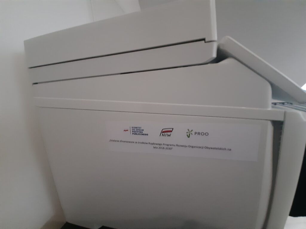 W ramach zadania zakupiono fabrycznie nowy laptop oraz urządzenie wielofunkcyjne.
